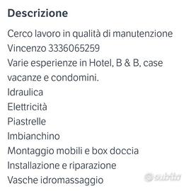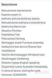 Diverse esperienze Italia ed estero, Elettricista Idraulico Piastrellista Imbianchino Serramenti Vasche idromassaggio Antennista Impermeabilizzazione terrazzi Manutenzione ordinaria e straordinaria programmata. Cerco lavoro anche a giornata, Cordiali saluti Vincenzo 333 606 5259