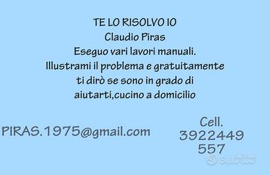 Mi chimo Claudio e sono un tutto fare Descrivetemi il vostro problema e vi risponderò se posso risolverlo. Zona Olbia,Cannigione,Arzachena e zone limitrofe, grazie. Anche lavori di muratura condizionatori,idraulica,giardinaggio,ecc.,manutentore. Grazie
