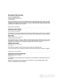 Mi chiamo Nicoletta ho 24 anni, cerco urgentemente lavoro, ho lavorato come commessa di abbigliamento uomo e donna, in fabbrica di forse e da poco ho acquisito la qualifica come operatrice di infanzia starei cercando maggiormente in quest'ambito, ho sempre voluto lavorare con i bambini e vorrei crescere in quest'ambito.