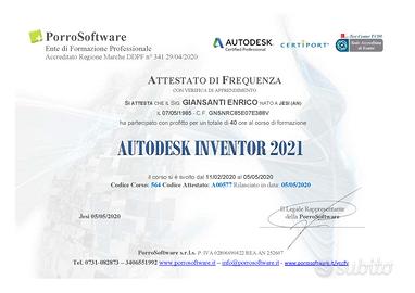> CERTIFICAZIONE AUTODESK INVENTOR PROFESSIONAL 2021 (corso base e avanzato)