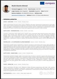 Oggetto: CURRICULUM VITAE (Europass) INFORMAZIONI PERSONALI Nome e Cognome: Ahmed Shaik Alamin Indirizzo: Via Michelangelo 24, 65100 Pescara (PE), Italia Telefono: +39 3284830543 E-mail: Alaminahmed15355@gmail.com Data di nascita: 14/04/1990 Nazionalità: Bangladese ESPERIENZA PROFESSIONALE [21/07/2025 - Attuale] | Cuoco di Sushi (Sushi Man) Sushi Niko Tre | Pescara, Italia Responsabile della linea Sushi: preparazione di Nigiri, Sashimi, Uramaki e Hosomaki. Taglio professionale del pesce fresco e gestione delle materie prime. [02/09/2024 - 09/05/2025] | Aiuto cuoco (Cucina Giapponese) CRUDOGENO SRLS | Italia Assistenza nella preparazione di piatti caldi e freddi della tradizione giapponese. Gestione della linea di cucina e supporto nella preparazione di Tartare e Roll. [02/08/2023 - 16/07/2024] | Manovale edile L.R. COSTRUZIONI DI LUPESE RAIMONDO | Italia Supporto generale nelle attività di cantiere e costruzione. Gestione materiali e attrezzature edili [06/04/2023 - 17/07/2023] | Aiuto cuoco (Cucina Giapponese/Sushi) SHABU SHABU S.R.L | Italia Supporto operativo nella preparazione del riso per Sushi e assistenza ai cuochi senior. [25/03/2023 - 31/03/2023] | Aiuto cuoco (Cucina Giapponese) GIFUTO SRLS | Italia Preparazione della linea e supporto nella gestione degli ordini in cucina. [01/06/2022 - 30/03/2023] | Cuoco di ristorante ZHENG YAN | Italia Preparazione di piatti della cucina asiatica e gestione operativa della cucina. ISTRUZIONE E FORMAZIONE Diploma di Scuola Primaria | Bangladesh COMPETENZE PERSONALI Lingue: Bengalese: Madrelingua Italiano: Conoscenza pratica (lavorativa) Inglese: Livello base Hindi / Urdu: Ottima conoscenza parlata Competenze Professionali: Esperto nel taglio del pesce e tecniche di preparazione Sushi Conoscenza delle norme igienico-sanitarie (HACCP). Flessibilità oraria e grande capacità di lavoro in team. TRATTAMENTO DEI DATI PERSONALI Autorizzo il trattamento dei dati personali contenuti nel mio curriculum vitae in base all'art. 13 >>.