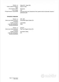 Ho maturato diversa esperienza nel settore della ristorazione, ricoprendo ruoli come chef, cameriere, barista e banconista, con competenze nella gestione della cucina, preparazione dei menù, servizio al cliente, lavoro in team e organizzazione del lavoro.