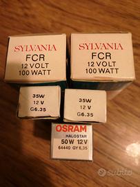 12 Lampadine alogene per proiettore varie potenze (vedi dettaglio foto). Sono tutte nuove, ermeticamente chiuse mai utilizzate. Vendo 5 euro cadauna. Se acquistate tutte insieme sconto. Zona di consegna Montesacro piazza Sempione oppure piazza Regina Margherita