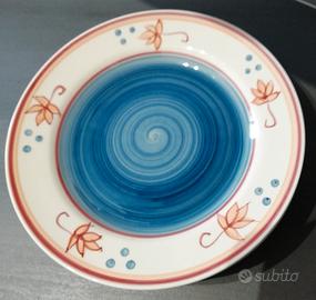 Vendo stupendo servizio da 6 in porcellana della Pagnossin, nuovissimo e mai usato, composto da 6 piatti piani, 6 piatti fondi e 6 piattini frutta. Insieme a questi 18 pezzi ci sono anche 6 tazzine da caffè coi suoi 6 piattini (vedi foto). Spese di spedizione a carico di chi acquista.