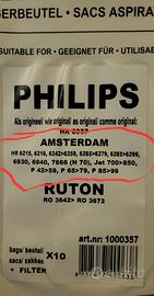 19 sacchetti + 1 filtro per l'aria per aspirapolvere Philips, i modelli li trovate in foto, così anche le misure.