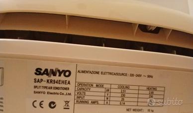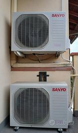 Coppia Condizionatori Climatizzatori Sanyo 9000BTU Funzioni di raffreddamento e Pompa di Calore Forniti disinstallati con circuito gas protetto e pronti per il ritiro. Perfettamente funzionanti, manutenuti regolarmente con unità esterne sempre al coperto. Inclusi telecomandi originali e istruzioni