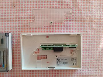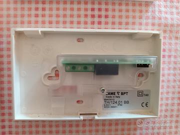 Vendo coppia (2 pezzi) di cronotermostati elettronici giornalieri/settimanali BPT (CAME) modello TH/124, uno dei modelli più affidabili e semplici da programmare grazie ai pratici cursori fisici. I dispositivi sono ideali per gestire il riscaldamento domestico in modo preciso e intuitivo. Caratteristiche principali: Marca: BPT / CAME Modello: TH/124.01 BB Programmazione: Tramite cursori (uno per ogni ora della giornata) per impostare temperatura Comfort o Risparmio. Alimentazione: A batterie (3 pile stilo AA da 1,5V), non richiede passaggi di cavi elettrici per l'alimentazione. Compatibilità: Universale, si installa facilmente a parete sulla base fornita. Stato dei prodotti: Entrambi i termostati sono perfettamente funzionanti e completi di base per il fissaggio a muro e protezione interna. Pezzo 1: In ottime condizioni estetiche. Pezzo 2: Perfettamente funzionante, segnalo solo un leggero alone sulla cover trasparente esterna (come visibile in foto), che non pregiudica minimamente la visibilità del display o l'utilizzo dei tasti. Le basi a muro sono incluse e i contatti sono puliti. Prezzo: 80€ per la coppia. Disponibile per consegna a mano in zona Torino sud.