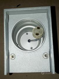 Disponibili n°2 pezzi nuovi in confezione originale. Faretto di alta qualita' da esterni, utilizzabile anche in interni, fissaggio a parete, lampadina 12V attacco GW5.3 alogena massimo 50W o a led, trasformatore e lampadina non inclusi. Colore grigio chiaro, Classe III, Peso netto 0.4 Kg, IP54. Prezzo totale per n°2 pezzi molto basso, un solo pezzo costa piu' di 200,00euro