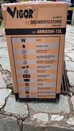 Vendo 2 deumidificatori nuovi (ancora imballati) marca Vigor modello Armatan 12L 185 W (dim 25,5x22x47 cm). Ciascun copre fino a 25 mq, ventola con 2 velocità, timer 0-24 ore, display digitale LED, serbatoio acqua 2L, ruote, autospegnimento quando pieno