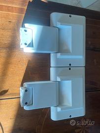 smaltati bianchi, uno ha il vetro e la lampadina, l'altro e' senza vetro e lampadina