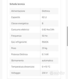 OCCASIONE!!! Vendo a causa di mancata inizio attività 2 Frigo pozzetto professionali verticali statici per cibo e bevande, capacità 62/63 L e dimensioni lt Ø 445x965h mm. Il prodotto presenta superficie esterna in lamiera preverniciata con trattamento anticorrosione, superficie interne in ABS, cestello, termometro analogico, regolatore temperatura meccanico, sbrinamento automatico a fermo compressore e 4 ruote. Il pozzetto può contenere a titolo esemplificativo 40 bottiglie da 33 cl o 50 lattine da 33 cl. Completamente nuovi e ancora imballati come da foto. Ritiro di persona , direttamente presso l’ubicazione dei prodotti a Monza città . Contattare solo tramite wathsapp