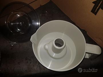 Vendo coppia di spremiagrumi Imetec SuccoRicco 700, modello Type CM7120, ideali per chi necessita di componenti originali per riparazioni. I dispositivi sono completi di tutti gli accessori visibili in foto (coni, filtri, caraffe e coperchi). Le scocche esterne e i componenti rimovibili sono in buone condizioni estetiche. Stato tecnico: Motori: Funzionanti. Problema riscontrato: Gli apparecchi presentano un'usura degli ingranaggi interni, motivo per cui la rotazione risulta intermittente. Vendita: Esclusivamente come parti di ricambio o per amatori del fai-da-te che desiderano ripararli. Specifiche tecniche: Modello: CM7120 Potenza: 25W Alimentazione: 230V ~ 50Hz