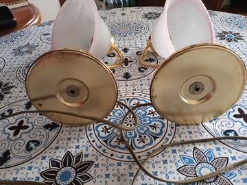 2 Lampade/Abat-Jour Vintage-Antiche colori rosa-oro, Funzionanti con interrutore sul filo (in un filo c'è del nastro vicino la spina), vendita senza lampadine, campane con venature rosa, aste color oro lavorate, piedistalli color oro, si vede l'usura del tempo e uso...VALUTA..., di tutte due 16€, supportano lampadine avvitabili, anche consegna a mano,. ho anche altri annunci,.