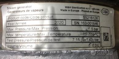 Vendo NUOVE 2 Mini Caldaia Generatore di Vapore per Sterilizzatrice Autoclave…. Ora non saprei per quale marca e modello di apparecchio…. Chi fa il tecnico o del settore,dalla scheda dati tecnici potra’ desumerlo….. cedo a SOLO 70 EURO cadauna(costavano circa 200 cad)…. Se in coppia SOLI 100 EURO🎁….. inclusi tubazioni nuove x alta pressione e temperatura.
