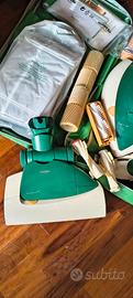 2 modelli di Folletto Vorwerk, uno più vecchio: Pulilux VK121 e uno più nuovo: Kobold 135. Entrambi revisionati e perfettamente funzionanti. Entrambi dotati di sacchetti di ricambio. Inoltre sono compresi, per VK121: manico e altri pezzi di ricambio; per Kobold 135: tutta la borsa di accessori, tra cui la spazzola di ricambio per l'aspirapolvere normale, il lucida pavimenti con due spazzole (una per parquet e una per pavimenti duri), un filtro di ricambio, batti-tappeti (per anche divani e materassi) con vari ricambi, libretto istruzioni, tubo lungo snodabile, e la spazzola girasole utile per spolverare. Modello VK121 comprensivo dei suoi accessori: 60€. Modello Kobold 135 comprensivo della sacca verde con tutti i suoi innumerevoli accessori: 160€. Tutto il pacchetto comprensivo di entrambi i modelli e tutti gli accessori e i ricambi: 200€.