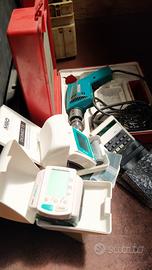 e un trapano Metabo nella valigetta rossa, provato alla corrente 230v gira, come anche la calcolatrice digitale con custodia funziona