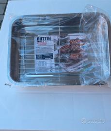 Teglia rettangolare da forno C/Griglia 42 x 31 cm Acciaio Inox Teglia da forno in acciaio inox con griglia 32,7x23,5cm