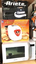 Preferito ed immediata risposta se whatsapp/voce 3286714037 Sergio Chi ritira OGGI 22 Novembre di persona… se prese tutte 3 (le due Bialetti ripiano superiore e la Scishare penultima a destra piano di sotto)…in blocco a SOLI 30 euro,IN REGALO darei:macchina per il Pane Alice con scatola ed il ferro da stiro a caldaia Ariete con scatola(da Riparare guarnizione la prima e gocciola la seconda)+altri €10 anche un piccolo sub da 14 cm ed forno,microonde ok ma resist grill dopo un po’ fumano ma sono escludibili Vendo,in ottimo stato estetico e pulite,ma TUTTE da controllare ed eseguire piccole riparazioni per chi ha un po’ di pratica e manulaita’. Le cedo cosi’ viste e piaciute come NON funzionanti per USO PEZZI RICAMBIO+€10 da spedire tutte in due colli separati;SE SINGOLE € 15 cad+5 di spedizione;NON con tuttosubito,SOLO pagamenti di tipo istantaneo.Potete leggere le mie oltre 180 recensioni a 5 stelle sul mio profilo;chi non si fidasse neppure di quelle,anche con tutela acquisto ma ppal e con ACCETTAZIONE che sta acquistando come da descrizione sul mio annuncio come NON FUNZIONANTI PER USO PEZZI…. Terro’ stampa del mio annuncio per eventuali contestazioni a posteriori… A chi interessasse a prezzo ottimo anche altri piccoli apparecchi da fare riparazioni o uso pezzi: Whirpool piano induzione NUOVO 4 fuochi arrivato con vetro spaccato sostituito in garanzia cedo per pezzi o chi tova un usato con vetro sano ed elettronica rotta,nuovo costa €475(purtroppo il ricambio vetro nuovo costa 320 quindi non conviene se non trovate un usato oppure se vi servono i pezzi perché questo mai montato neppure e con istruzioni;cedo a soli €70 trattabili;Alice macchina del pane €10 sostituire Guarnizione. Ariete Ferro a caldaia gocciola da sotto € 10. Microonde comby panasonic microonde Ok;resistenze grill fanno fumo (escludibili €15,prezzo del solo piatto pyrex);ed altri funzionanti ed alcuni anche nuovi con scatola. Bosch multif cucina €120 Stufa a due elementi Bartolini con telec €20