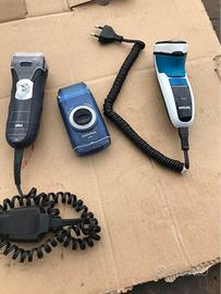 Vendo 3 rasoi per barba funzionanti. 1 modello BRAUN MobilShave M-60 a batteria, 1 modello BRAUN washable 300 a corrente e 1 modello Philips Charge a corrente. Sono funzionanti ma io non ho provato a radermi e pertanto non so la rasatura se va. Cedo ad euro 15.00 ognuno oppure 35.00 di tutti. Se interessati lasciate un recapito e vi richiamo io. Grazie