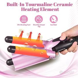 3 Tubi Piastra Onde Ferro Arricciacapelli,22MM Piastra arriccia Capelli Onde Beach Waves Ferro Arricciacapelli Ceramica Capelli,Temperatura Regolabile,Con 2 Clip e un guanto (rosa)