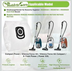 Rebirthcare 15 Sacchetti per Rowenta Power XXL ZR200520 ZR200720, per Rowenta Compact Power, Hygiene+, X-Trem Power & Silence Force RO3126 RO3143 RO64 RO63 RO68 RO39