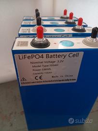 4 celle nuove 105ah 3.2v lifepo4 336wh ogni cella complete di kit staffe e bulloni fissaggio anche ritiro di persona