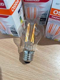 5 lampadine led Osram modello Prca100827cg2 ( LED CLA 100 ) nuove PRCA100827CG2 (spesso identificato commercialmente come LED CLA 100) è una lampadina a LED di alta qualità progettata per sostituire le classiche lampadine a incandescenza da 100W, offrendo un design vintage con tecnologia moderna. •Potenza (Consumo): Circa 11W - 13W (a seconda della specifica revisione), ma con una resa luminosa equivalente a una vecchia lampadina da 100W. •Flusso Luminoso: 1521 lumen, che garantisce un'ottima illuminazione anche per ambienti ampi. •Temperatura Colore: 2700K (Warm White). Produce una luce calda e accogliente, identica a quella delle lampadine tradizionali. •Attacco: E27 (il classico "attacco grande"). •Design: Si tratta di una lampadina Clear (trasparente) con tecnologia a filamento LED. Questo la rende ideale per lampadari a vista dove l'estetica è importante. •Efficienza Energetica: Risparmio energetico superiore all'80% rispetto alle lampadine alogene o a incandescenza. •Durata: Progettata per durare circa 15.000 ore, riducendo drasticamente la necessità di sostituzioni frequenti. •Accensione Istantanea: Raggiunge il 100% della luminosità immediatamente, senza tempi di riscaldamento. •Qualità della luce: Indice di resa cromatica (CRI) generalmente superiore a 80, che assicura colori naturali e vividi negli ambienti domestici. Tabella Riassuntiva ParametroValore Equivalenza100W Luminosità1521 lm Colore LuceBianca Calda (2700K) FinituraTrasparente (Filamento) Classe EnergeticaGeneralmente D o E (secondo i nuovi standard EU) Vendo in blocco a 32 euro Garantisco massima serietà Pagamento e spedizione con portale Materiale nuovo, nel suo imballo originale