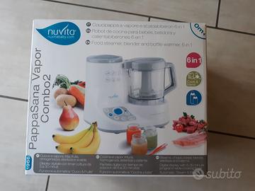 6 elettrodomestici in 1: cuoce a vapore, trita, frulla, omogeneizza, sterilizza, scalda biberon e scongela vasetti. Display digitale con timer cottura da 5 a 30 minuti, con funzione automatica Cuoci&Frulla. Adatto per carne, pesce, frutta e verdura. Nuovo, usato una sola volta per verificare il buon funzionamento dopo l’acquisto, completo di accessori, manuale di istruzioni e scatola originale, pagato euro 120.00, vendo a euro 60,00.