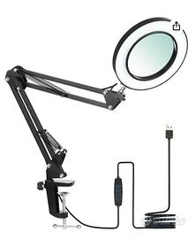Lente d'ingrandimento con luce e supporto, 3 modalità a colori Dimming senza passi, Braccio oscillante regolabile Lente da scrivania con lampada a LED 5-Diopter in vetro, per lavori ravvicinati, riparazione, artigianato, lettura, cucito