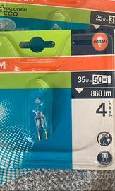 Pacchetto di 10 lampadine Osram (6+2+2) HaloStar Eco da 25W 35w e 28 (regalo 2 halogen , confezione tagliata), nuove e ancora nella confezione originale. Sono perfette per chi cerca un'illuminazione efficiente ed elegante.