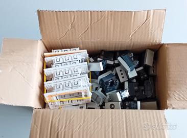 Vendo serie BTICINO LIGHT usati ma in buono stato, 85 pezzi: - 17 Telai articolo N4703; - 18 Placche articolo N4803; - 2 Prese TV articolo NT4202D; - 27 Copriforo articolo N4950; - 8 Prese articolo N4113; - 1 Presa articolo NT4180; - 5 Deviatori articolo N4003; - 4 Interruttori articolo N4001; - 3 Invertitori articolo N4004. Contattatemi per ulteriori foto o informazioni anche via Whatsapp al 327.2109487. Giuseppe