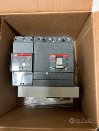 Vwndo interuttore magnetotermico differenziale Abb Sace quadripolare 160A relè 100A dotato di ausiliari per segnalazione a distanza e bobina di apertura con contatto su pulsante remoto NC