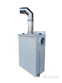 abbattitore di fuliggine per stufe a pellet. il prodotto viene venduto a privati per installazioni fai da te. e' da precisare che il prodotto non e' un prodotto a norma in quanto artigianale la normativa richiede lo scarico dei fumi sopra il tetto. e' possibile installarlo come è più comodo al cliente avendo già di serie i due ingressi destro, e posteriore con oblo d ispezione privo di vari accessori d'istallazione
