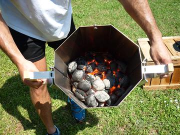 Consente di accendere la carbonella in modo facile e veloce solo sfruttando l' effetto camino dell' accenditore.