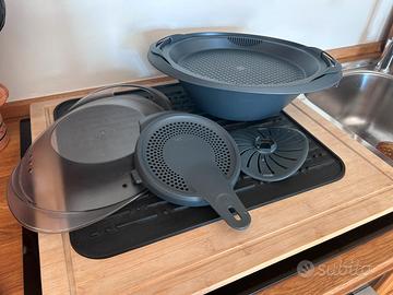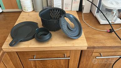 Vendo accessori Bimby originali Vorwerk compatibili con Bimby T5 e T6: un Varoma completo, un coprispruzzi, un coprilama, un cestello, un tappo.