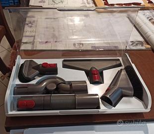 N.8 accessori più "torre" porta oggetti originali del Dyson V10. Alcuni accessori sono stati usati (poche volte) ma ancora in ottimo stato. Oltre alle spazzole è presente il tubo prolunga e l'inserto per raggiungere le aree superiori dei mobili.