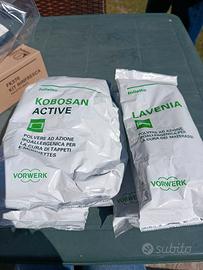 Set nuovissimo per Folletto Vorwerk VK150 contiene: - spazzola x tappeti, moquettes e materassi. Cod. EB371 - spazzola per materassi Cod. EB370 - kit rinfresca, Cod. FK370 - 3 confezioni polvere Kobosan Active - 4 confezioni polvere per materassi Lavenia Mai usato, nella sua confezione. per altri dettagli o foto scrivete