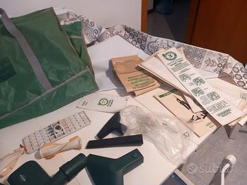 Vendo in blocco gli accessori Folletto con borsa porta accessori e sacchetti visibili in foto. Disponibile alla spedizione. Solo nel caso di ritiro a mano regalo anche 2 aspirapolvere Folletto per pezzi di ricambio.