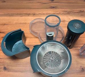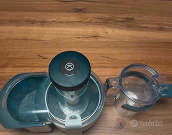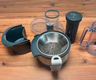 Vendo accessorio Centrifuga originale KENWOOD, modello AT641. Perfetto per preparare succhi di frutta e verdura freschi in pochi secondi. L'accessorio è completo di tutto: * Corpo centrifuga con filtro in acciaio inox * Coperchio trasparente con ampio tubo di inserimento (per mele intere!) * Pestello per spingere gli alimenti * Contenitore raccogli-polpa * Caraffa graduata da 1 Litro con coperchio e filtro anti-schiuma Usato pochissimo, in ottime condizioni e perfettamente funzionante. Pulito e pronto all'uso, come da foto. Questo accessorio è compatibile con quasi tutte le planetarie Kenwood con attacco ad alta velocità (dove si attacca il frullatore). Va bene per le serie: * Kenwood Chef (KVC, KVL...) * Kenwood Major (KMM, KVL...) * Cooking Chef (KCC, KCL...) * Chef Sense * e molti altri modelli.
