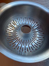 con una vaschetta raccogli succo da 600 ml di capacità, con passino in acciaio inox e un beccuccio ergonomico per migliorare la mescita.