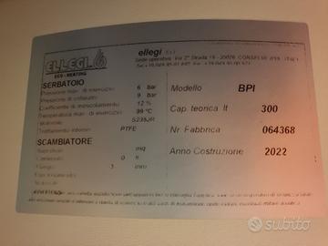 vendesi puffer di accumulo acqua sanitaria marca ellegi. attualmente collegato ad idrostufa ma con possibilità di essere collegato anche a resistenza per alimentazione elettrica (eventualmente disponibile alla vendita in quanto presente).