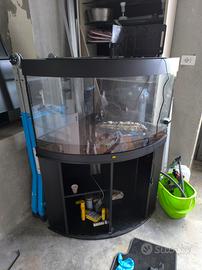 vendo per inutilizzo acquario angolare 190 litri molto usato e da revisionare mobile per mancate porte e filtro che funziona e non funziona