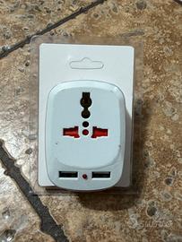 Adattatore Presa Inglese – Con 2 porte USB, compatibile con spine italiane, leggero e sicuro. Nuovo. Solo Spedizione.
