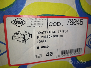 Vendo adattatore triplo bipasso/ schuko 10 A+T colore bianco marca OVA sacchetto da 10 pezzi sigillato mai usati a euro 12 può spedizione