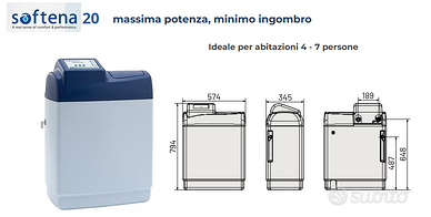Vendo addolcitore professionale di tipo volumetrico proporzionale nuovo ancora nell’imballo originale come potete osservare dalle foto. Made in Europe marca Pentair mod. Softena 20. Va bene per una famiglia di 5-6 persone. Produttore leader in Europa, è uno dei pochi al mondo con possibilità di connessione ad internet per visualizzazione in tempo reale dei parametri di funzionamento!