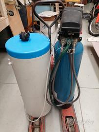 Addolcitore d'acqua bi-bloc, spesso identificato con la valvola Fleck 5600. Funzione: Elimina il calcare dall'acqua domestica o industriale per proteggere elettrodomestici e tubazioni.