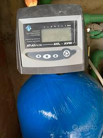 Addolcitore Atlas per acque molto dure. Consumo idrico giornaliero litri 1.500. Sistema di contro lavaggio automatico. Recipiente per salamoia. Filtro a cartuccia