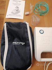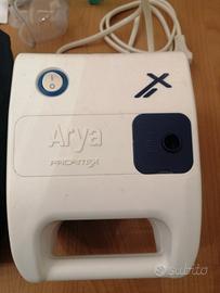 Aerosol Arya Prontex apparecchio per aerosolterapia, dimensioni ridotte e facilmente trasportabile. Il kit prevede ampolla nebulizzatrice, una mascherina di plastica e una borsa per la custodia ed il trasporto.