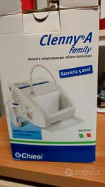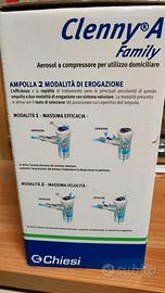 Macchina per aerosol a compressore per utilizzo familiare Clenny A family a marchio Chiesi. Aperto ma praticamente mai usato. Completo di ampolla con due modalità di erogazione, mascherina e mascherina per bambini. Dispositivo medico di classe Ila