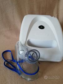 apparecchio per aerosol Atomo, usato poche volte e sempre disinfettato prima di essere riposto, è come nuovo (solo la scatola in cartone presenta dei piccoli difetti sugli angoli).